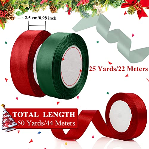 Nastro Natalizio per Confezioni Regalo, 2 Rotoli Nastro di Raso Rosso Verde Scuro per Artigianato, Nastri Larghi 25mm per Creazione di Ghirlande di Torta Albero di Natale Decorazioni di Nozze, 45M