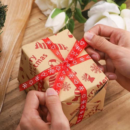 Bella decorazione: questi nastro natalizio sono stampati con fiocchi di neve bianchi, alberi di Natale e motivi a stella, che sembrano molto delicati e belli e possono creare un'atmosfera di Natale forte per artigianato e regali.