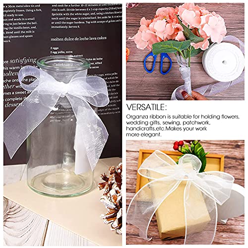 Nastro Organza Bianco Nastro di Chiffon 4cm*45m Rasparente Nastro di Organza per Confezioni Regalo Matrimonio e Fatto a Mano (2 rotoli)