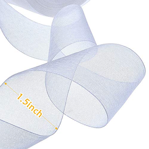 Nastro in organza da 49 yarde, nastro in chiffon bianco per confezioni regalo, rotolo di nastro in tulle cablato largo 1,5 pollici per decorazioni nuziali, nastro di San Valentino per regali