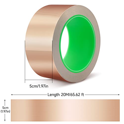 Nastro di rame autoadesivo contro le lumache,5cm * 20m nastro di rame autoadesivo, nastro di rame resistente al calore per la schermatura EMI, adesivo conduttivo per riparazioni elettriche