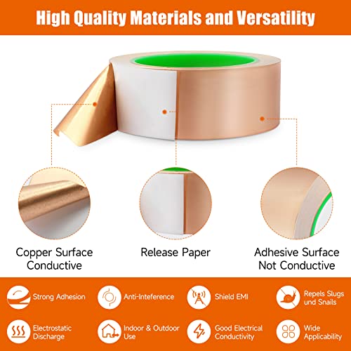 【Materiali di alta qualità.】Il nastro di rame è largo 50 mm e lungo 20 m e può essere tagliato con forbici domestiche o strappato direttamente a mano. Il nastro di rame Snail è realizzato con adesivo conduttivo di alta qualità e materiale in rame. Il rame lumaca è elettricamente conduttivo e resistente alle alte temperature, all'umidità, alla corrosione, all'ossidazione e allo scolorimento.