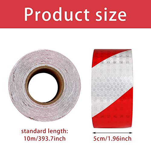 Nastro Riflettente, Adesivo Di Avvertimento Rosso/Bianco 10 M X 5 Cm Impermeabile Nastro Riflettente, Autoadesivo Nastro Di Sicurezza Per Veicoli Auto Rimorchi Barche