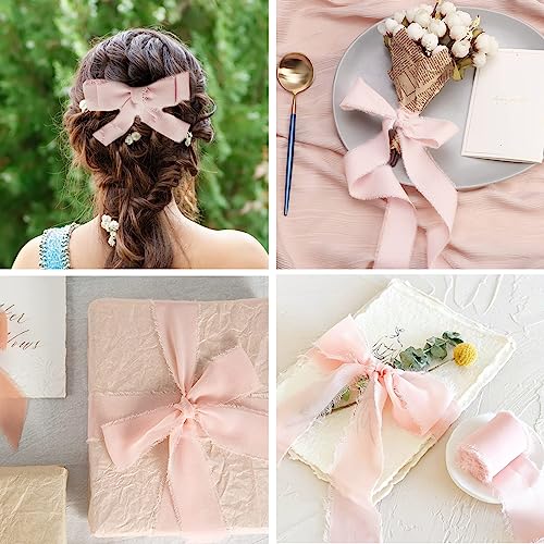 ✅【3 rotoli di nastro chiffon colorato】La nostra confezione contiene un totale di 3 rotoli di nastro chiffon, ciascuno largo 3,8 cm e lungo 6,3 metri. I nastri di chiffon sono in colori rosa e di lunghezza sufficiente per coprire le vostre esigenze quotidiane di bricolage. Nastro di seta fatto a mano, dà un tocco perfetto e un'estetica rustica.
