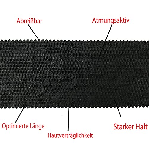 Applicazione del nastro sportivo sportivo Ziatec Cotton Premium: per la prevenzione, il trattamento e la riabilitazione delle lesioni. Inoltre, la Sporttape è composta al 100% da Bamwolle inelastica. È un materiale traspirante e traspirante.