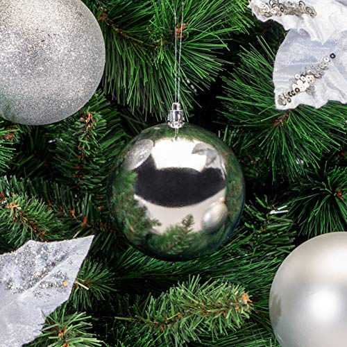 QUALITA' E CONVENIENZA: Il Box contiene al suo interno 24 Sfere di diametro 6 Cm. Dipinte interamente con colore argento dall'effetto lucido progettato per mantenere sempre vivo il colore originale nel tempo. Realizzate con uno spessore maggiore rispetto alle classiche palline natalizie in modo da evitare rotture o frantumazioni.
