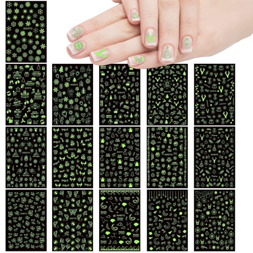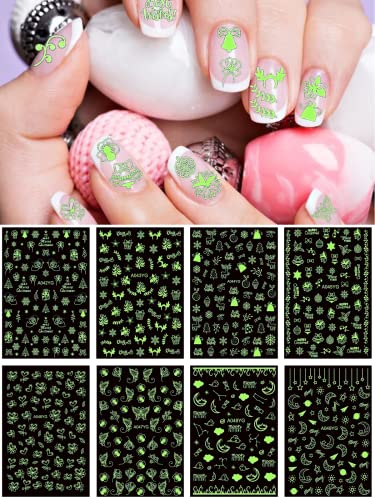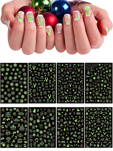 【Adesivi per unghie fluorescenti】 Gli adesivi per unghie di Natale possono mostrare un diverso effetto delle unghie durante il giorno e la notte. Il giorno mostra l'effetto bianco, la notte al buio si illuminerà, come le lucciole, alla festa di Natale per aumentare il mistero.