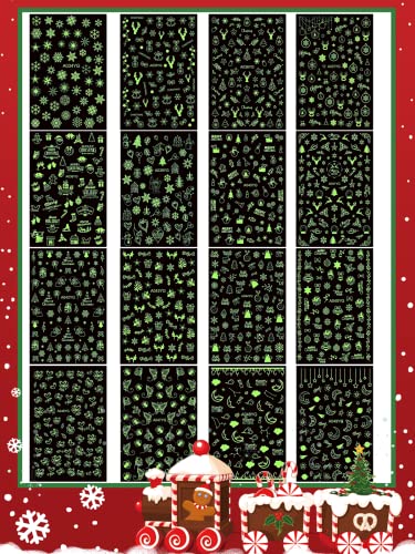 【Adesivi per nail art di Natale】 Riceverai 16 adesivi per unghie luminosi. Include modelli classici in stile natalizio: Babbo Natale, pupazzo di neve, Jingle Bell, albero di Natale, renna, fiocchi di neve, guanto natalizio e confezione regalo, ecc. Disegna la tua nail art. Gli adesivi per unghie luminosi sono gli accessori più alla moda.
