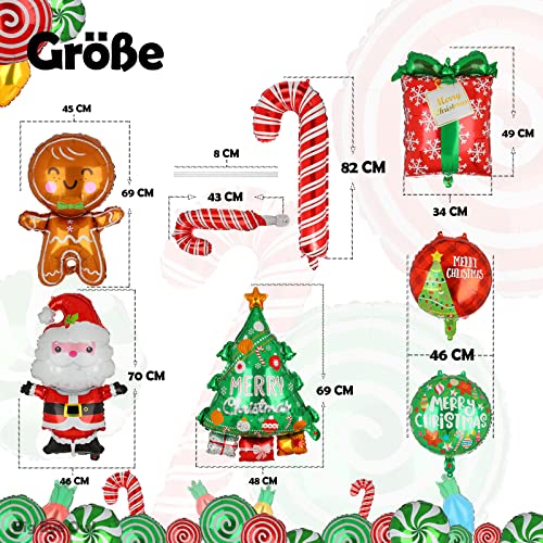 Natale Decorazioni Kit Rosso e Verde Alluminio Palloncini Articoli per Feste Omino di Pan di Zenzero Bastoncini di Zucchero Babbo Natale Buon Natale Natalizi Foil Palloncino