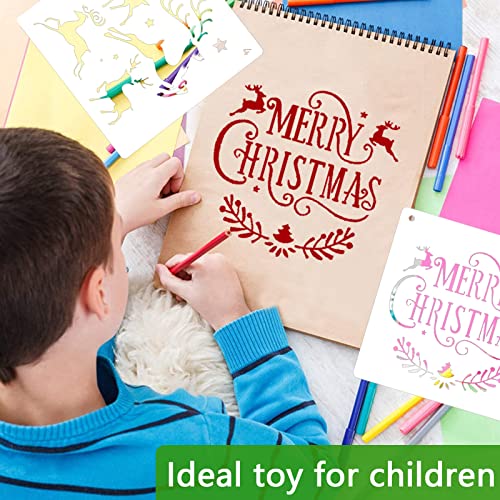 Natale Stencil di Pittura 9pcs, Stencil Natalizi Decoupage Natale Stencil DIY Creazione Della Carta Modello di Pittura Riutilizzabili Album Fotografici Scrapbooking Decorazione Natalizia