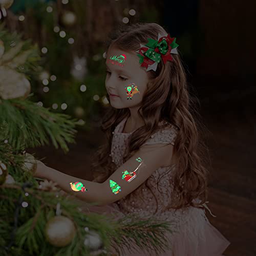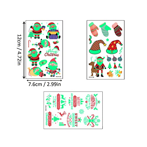 Natale Tatuaggi Temporanei per Bambini, 16 Fogli Luminous Trasferelli Natalizie Tattoos per Bambini Regali (Natale Tatuaggi)