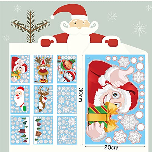 Natale Vetrofanie,9 Fogli Vetrofanie Natalizie per Finestre, Adesivi Natalizi Fai-da-te Rimovibili, Babbo Natale, Adesivo Per La Decorazione Della Finestra di Natale Delle Renne