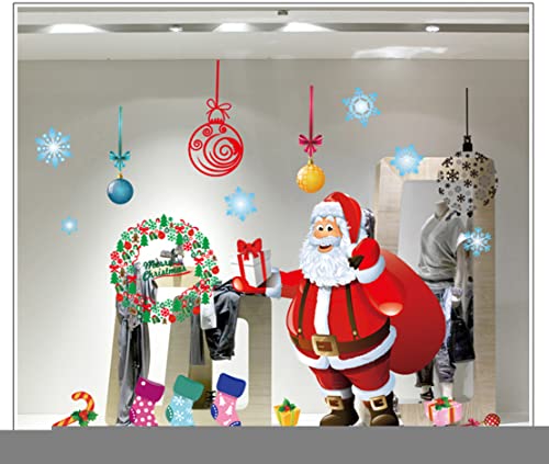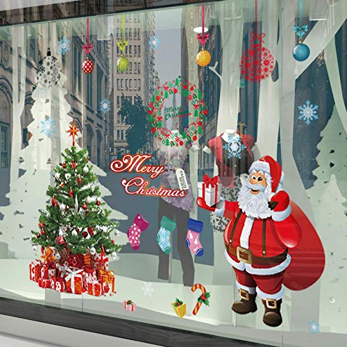 Natale Vetrofanie, DIY Rimovibili Natale Adesivi Murales Stickers PVC Babbo Natale Albero di Natale Finestre Adesivo per Casa Camerette Salotto Fai Da Te (C_4PCS(30x90cm))