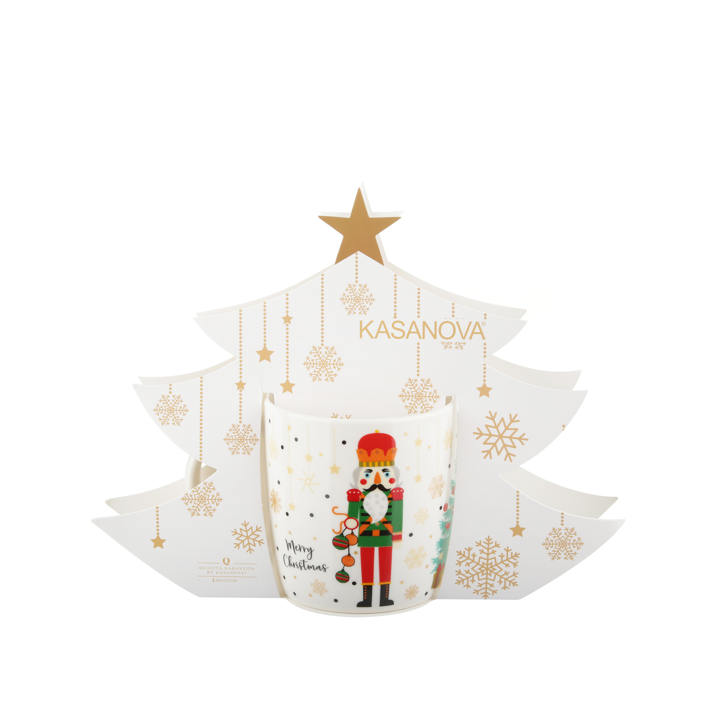 La fiaba di Natale dello Schiaccianoci diventa protagonista dei tuoi momenti di pausa durante le feste con questa tazza natalizia. Realizzata in fine e resistente porcellana New Bone China, è decorata con il celebre soldatino Schiaccianoci, un albero di Natale e scritta di auguri. Sarà il perfetto accessorio per accompagnare i tuoi break a casa o in ufficio durante le feste, sorseggiando un buon tè caldo, una golosa cioccolata o una tisana fumante. La mug è lavabile in lavastoviglie. Capacità: 350 ml.