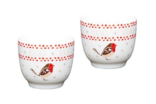 KitchenCraft-Pettirosso Natalizio Piccolo Uovo in Porcellana, 2 Pezzi, Colore: Bianco