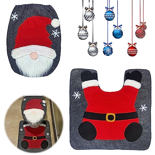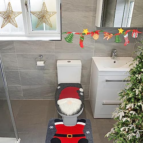 Natalizio Set Toilette Decorazioni Natalizie Copriwater Babbo Natale Decorazioni Bagno Babbo Natale Tappetino Da Bagno Toilette Natale Tappeto Da Pavimento Cuscino Wc Decorazione Natalizia (Grigio)