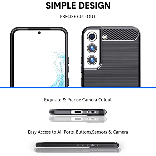 Natbok Cover per Samsung Galaxy S22 5G con 2 Pezzi Pellicola Vetro Temperato,Progettare in Fibra di Carbonio e TPU Shell AntiGraffio Custodia per Samsung S22,Assorbimento Degli Urti Cover,Nero