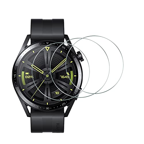 Natbok [3 Pezzi] Pellicola Protettiva Compatibile con Huawei Watch GT 3 Pro 46mm Vetro Temperato,9H Durezza, Anti-graffio, Senza Bolle per Huawei Watch GT 3 Pro 46mm Pellicola