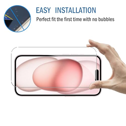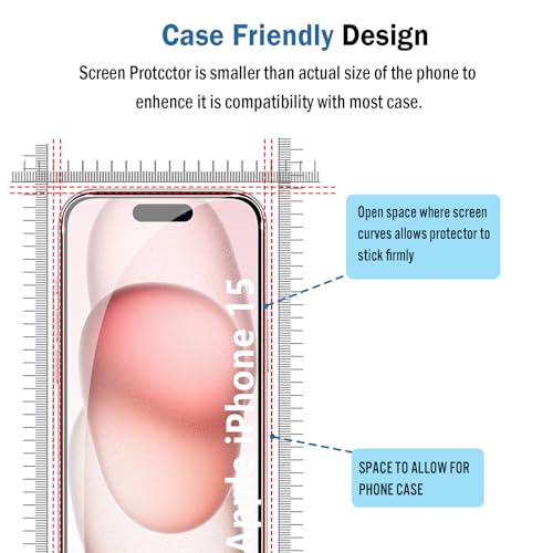 【Nota speciale】: a causa del bordo rotondo di iPhone 15, la nostra vetro temperatoper iPhone 15 è leggermente più piccola dello schermo, consente al telefono di adattarsi alla maggior parte delle custodie sul mercato e previene bolle e sbucciature intorno ai bordi. Inoltre, contribuirà a rendere l'installazione super facile, una volta installata, l'aria verrà assorbita automaticamente, senza produrre alcun alone bianco, senza colla o bolle.