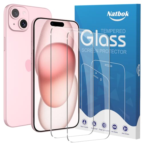 Natbok 2 Pezzi Vetro Temperato per iPhone 15/iPhone 15 Pro Pellicola Prottetiva,Anti Graffio,Durezza 9H,0,33mm Trasparente,Senza Bolle, Anti-Impronte Film per iPhone 15,Facile da Installare