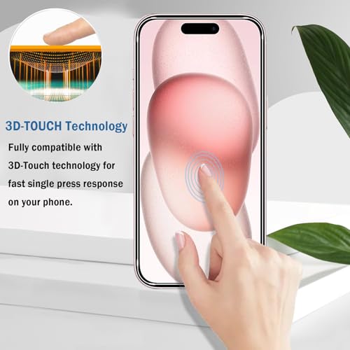 【Alta chiarezza e alta sensibilità al tatto】: questa pellicola protettiva in vetro temperato per iPhone 15 è dura ma ultra sottile, lo spessore è di soli 0,33mm per non sentire nulla sullo schermo. Il vetro ad alta definizione al 99,99% e il rivestimento idrorepellente e oleorepellente protegge da sudore e residui di olio dalle impronte digitali. Permette anche il tocco e questo fornisce una grande sensibilità per risposte rapide e un tocco preciso al 100% dello schermo.