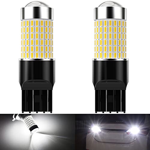 NATGIC 7443 7440 T20 Lampadine a LED Xenon White 3000LM 3014SMD 144-EX Chipset con proiettore dell'obiettivo per luci di retromarcia Posteriori del Freno retromarcia, 12-24 V (2 pacchi)