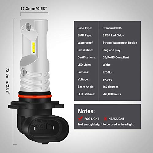 NATGIC 9005 HB3 LED Fend Light Bulb Xenon Bianco 1700LM CSP Chip per fendinebbia Anteriore Fendinebbia, 12V-24V (2-Pack)
