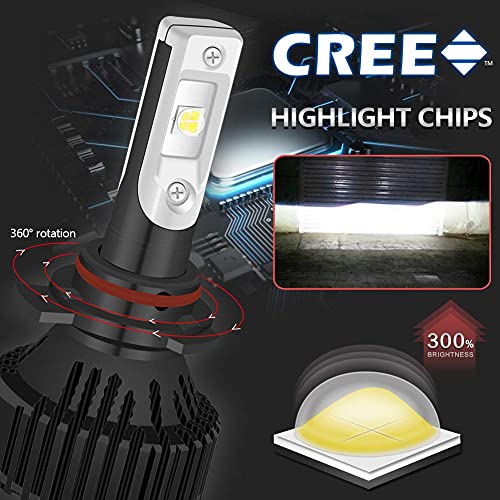 ❷【T8 - CREE Chips, Super Bright】:più luminoso del 300% rispetto alla lampadina alogena originale, alloggiamento interamente in alluminio con proiettore di lenti in vetro per una resa luminosa massima 16000lm / set (8000lm / bulbo), dissipatore di calore in alluminio aeronautico a bassa temperatura, costante integrato IC corrente per maggiore durata e basso consumo energetico.
