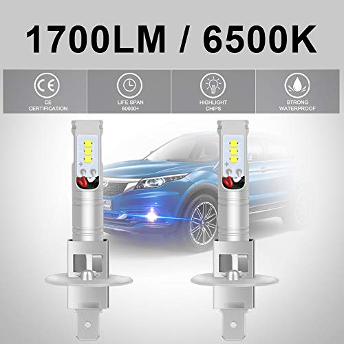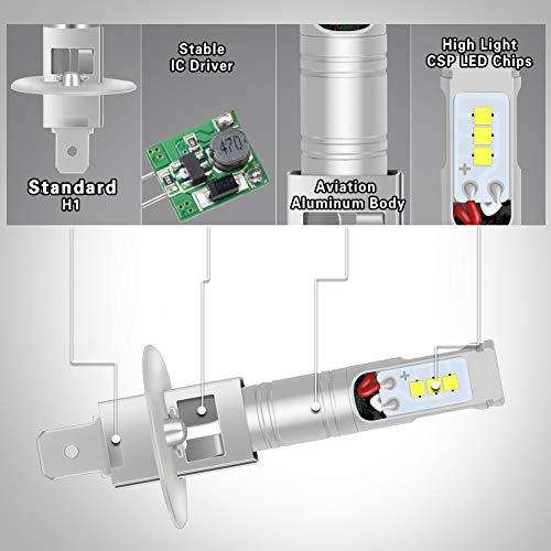 NATGIC H1 Led Fend Light Bulb Xenon Bianco 1700LM CSP Chip per fendinebbia Fendinebbia, 12V-24V (2-Pack)
