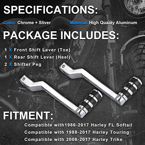 NATGIC Leva del Pedale del Cambio Moto CNC Alluminio Anteriore/Posteriore Leva del Pedale del Cambio Leva del Cambio e Pedale del Cambio per Harley FL Softail Touring Trike - Argento (2 Pezzi)