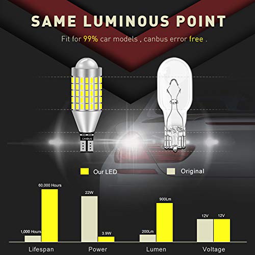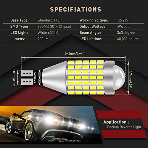 ❹ 【Applicazione Lampadine a LED T15】 - Comunemente utilizzato per luce di retromarcia, lampadine di parcheggio, lampadine di riserva, lampadine di coda, lampadine di targa, luci di posizione laterali, luci del bagagliaio ecc. Adatto per la maggior parte dei veicoli, basta Plug & Play per la sostituzione della lampada alogena.