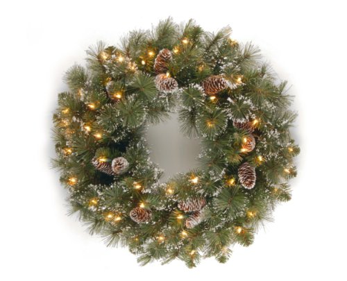 National Tree GP1-300-24 W - Ghirlanda di Pino, con Coni, Fiocchi di Neve e 50 luci Trasparenti