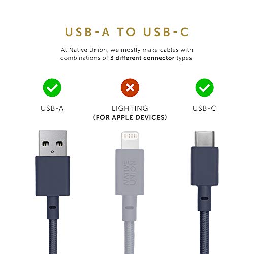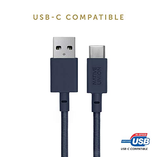 Native Union Belt Cable XL da USB-C a USB-A - Cavo di Caricamento Ultra Resistente da 3M con Cinturino in Cuoio - Compatibile con iPhone 15, Galaxy Z Fold 5, Flip 5 / S23 Ultra, iPad Pro (Marine)