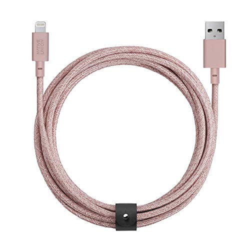Native Union BELT XL Cavo - Cavo di Caricamento Ultra-Resistente Rinforzato da 3 Metres (Certificato MFi) Lightning a USB con Cinghia in Pelle (Rose)