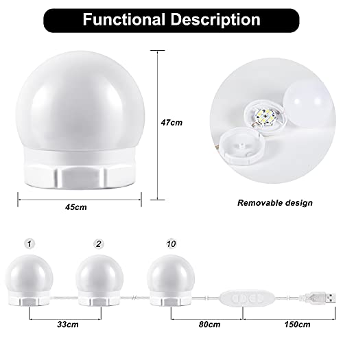 Natseekgo Luce a specchio, 10 lampadine Hollywood dimmerabili e 3 colori 10 livelli di luminosità con adattatore per specchio da trucco e toeletta (specchio non incluso) (10-lampadine)