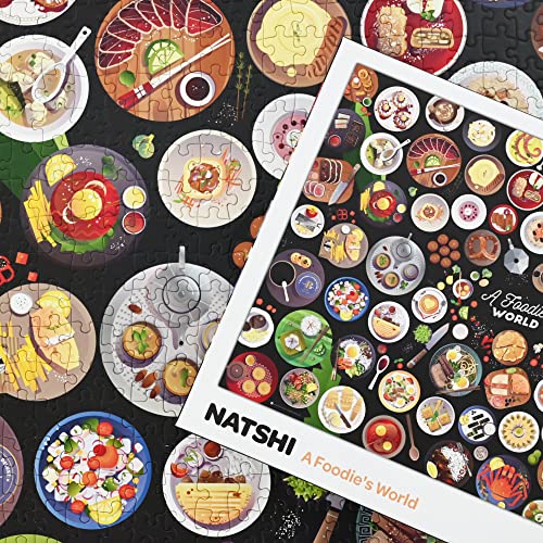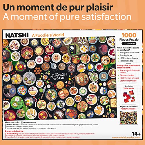 Natshi - A Foodie's World - Puzzle 1000 Pezzi per Adulti - 70 x 50 cm - Piatti del mondo - con poster e sacchetto - Pezzi in rilievo e opachi - Da 14 anni Giocattolo - Regalo di Natale - PZ001