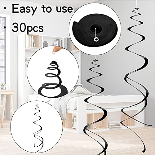NATUCE 30Pcs Compleanno Festa Turbinii Appesi,Decorazioni a Spirale,Turbinii Sospesi,Pendenti a Spirale Turbinio,Pendenti Ghirlande Decorazione a Soffitto Turbini per Matrimonio,Baby Shower (Nero)