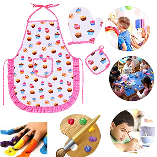 [Set di grembiuli per bambini] -Il set di 4 pezzi di grembiule da cuoco per bambini include grembiule per bambini, cappello, guanti da forno e pad resistente al calore, è un set completo di grembiule quando il tuo bambino ti aiuta a cucinare o fai da te in cucina.
