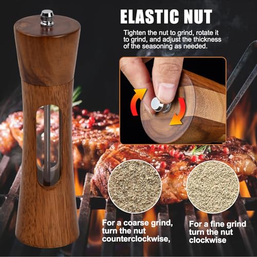 ❤Artigianato eccezionale: migliora la tua esperienza culinaria con il nostro set macina sale e pepe manuale di alta qualità. Realizzato in pregiato legno di acacia e vetro acrilico resistente, ogni macinino vanta un motivo a venature unico per un tocco di eleganza nella tua cucina.
