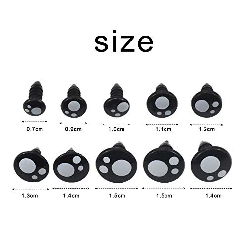 ❤Diverse dimensioni: Gli occhi di sicurezza in plastica sono disponibili in 5 formati, tra cui 8mm, 10mm, 12mm, 14mm, 16mm, ogni formato ha 30pcs, una varietà di dimensioni in grado di soddisfare le vostre esigenze diverse per la fabbricazione bambola.
