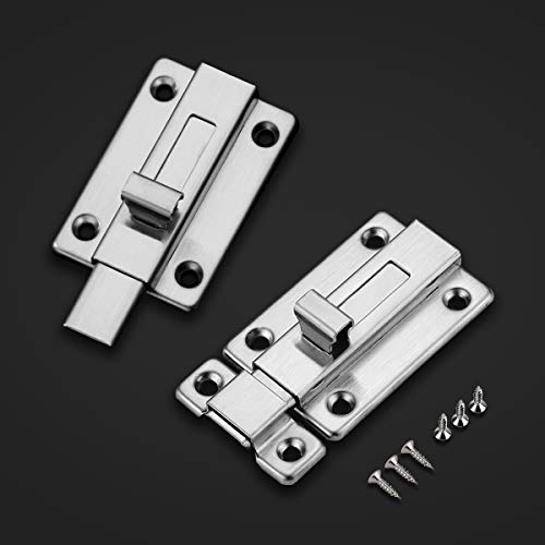 Natuce 2 Pezzi Chiavistello Scorrevole in Acciaio Inox 3 Inch, Serratura di Sicurezza per Porta Scorrevole Bagno, Fnestra, Mobili, Cancelletto per Animali Domestici,Viti Incluse
