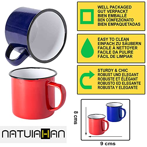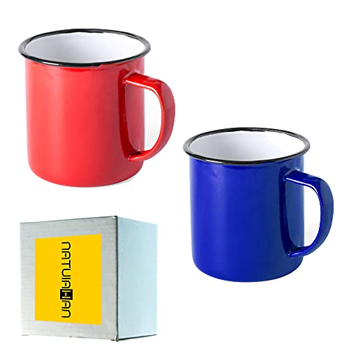 Natuiahan 2 Tazze in Metallo Smaltato. Set di 2 Tazze dal Design Vintage. Rifinito con Imperfezioni. (Blu, Rosso)