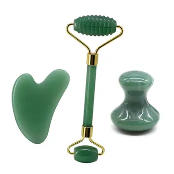 Natural Aventurine Jade Roller Gua Sha Board Face Lift Massage Anti Wrinkle Jade Massager Real Stone Facial Massager Set