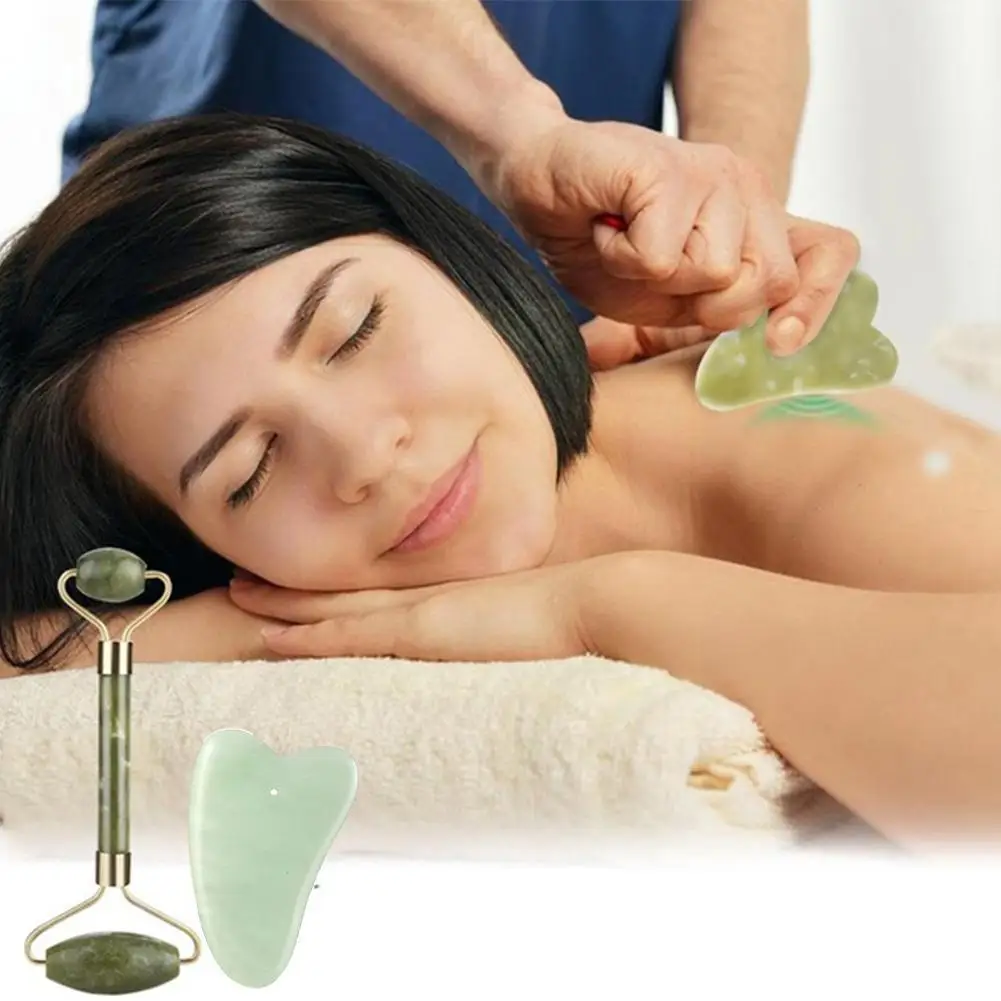 Natural Jade Beauty Device Double Massage Roller Face-lifting Device Massager C3Q3