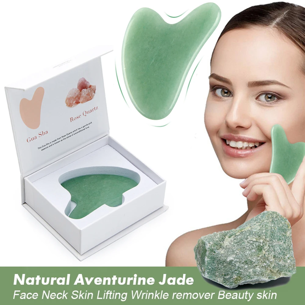 Natural Jade Gouache Scraper Massager for Face Gua Sha Massage Tool Face Skin Lifting Anti Wrinkle Skin Care (with Gift Box)