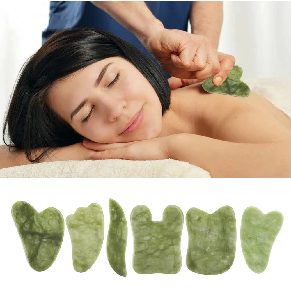 1pc Natural Jade Guasha Board Scraping Massage Spa Salon Acupuncture Therapy Skin Treatment Facial Care Tools