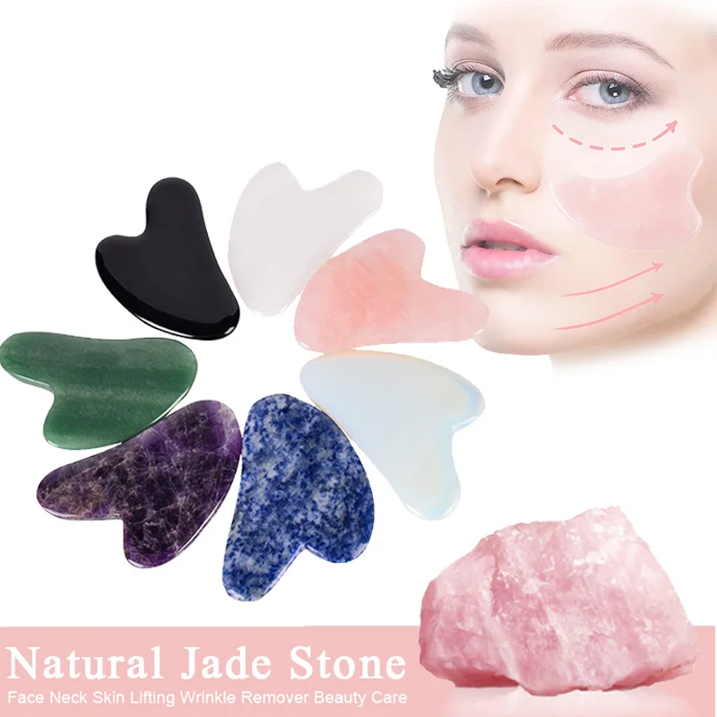 Natural Jade Multicolor Pink Gua Sha Massage Tool For Facial Beauty Reduce Wrinkles Skin Care Lift The Face Eye Guasha Massager