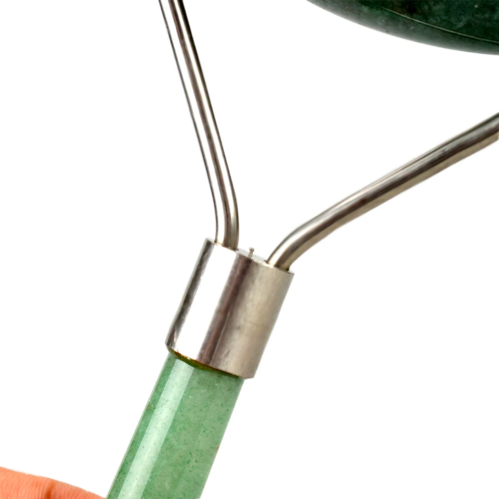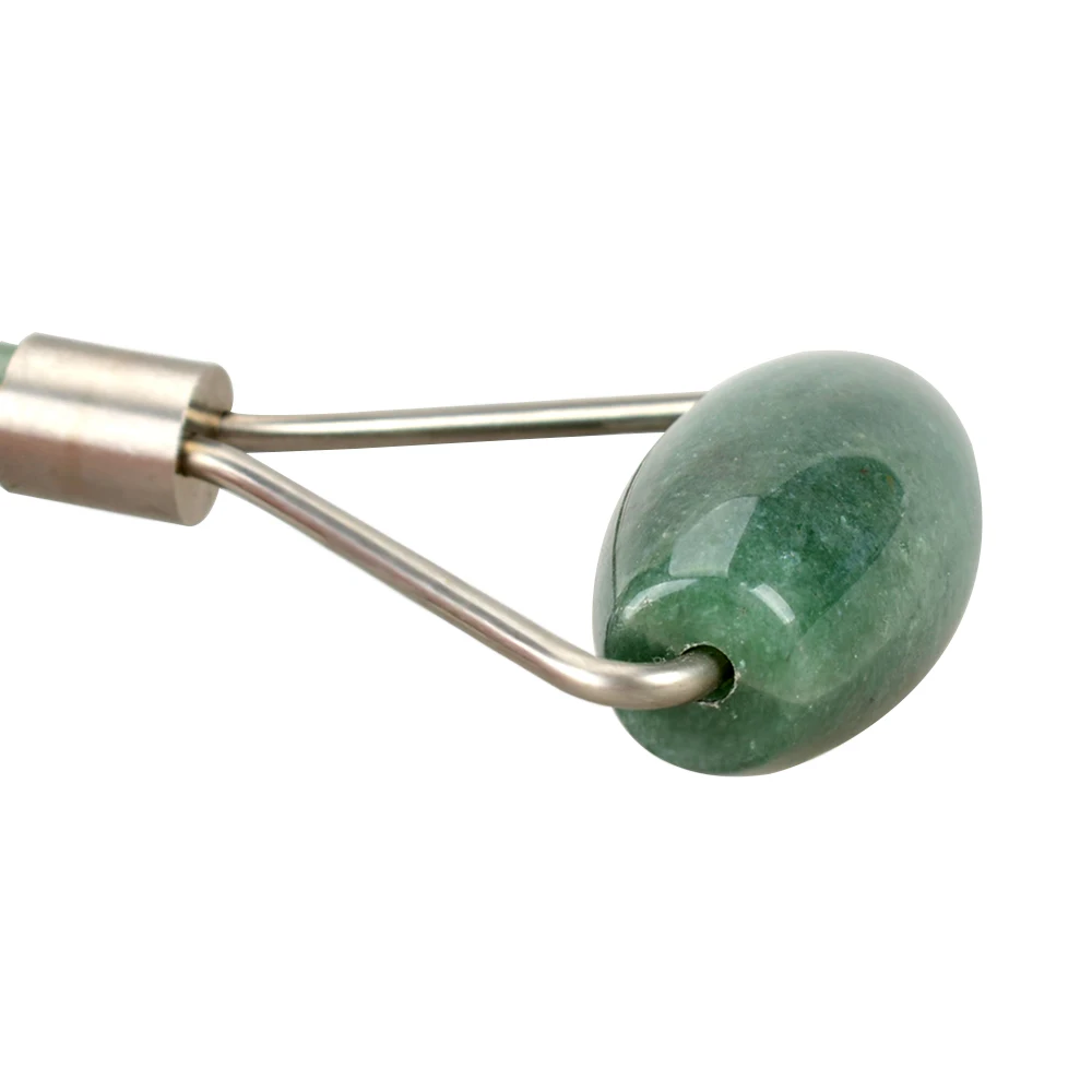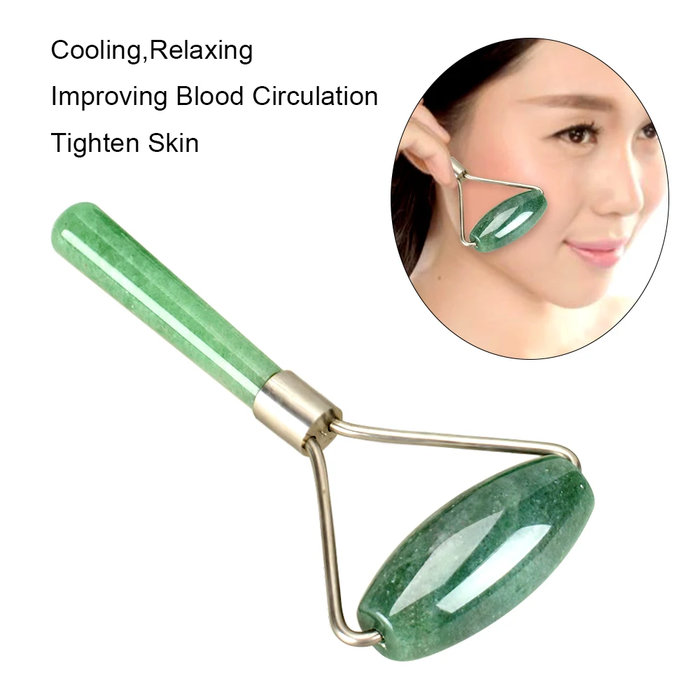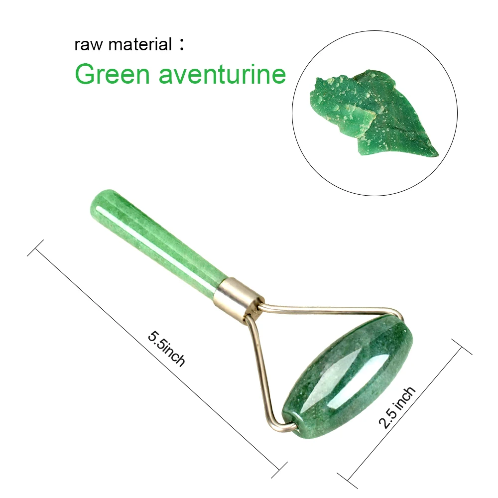 Natural Jade Roller Green Aventurine Point Massage with Stainless Steel Holder Face Skin Care Guasha Crystal Healing Massager