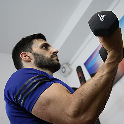Natural Logistics - Manubri Palestra in Neoprene Coppia (5 kg). Pesi Esagonali in Gomma Fitness per Pilates. Dumbbells Antiscivolo per Palestra in casa. Manubrio Sport a casa. KOTTAO