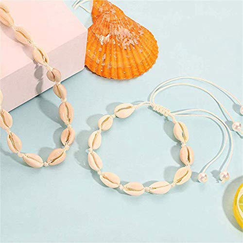 Natural Shell Bracciale collane per le donne Ragazze Hawaii Beach regolabili Cowrie Seashell Beads Choker Bracciale Summer Shell Jewelry Set (bianco)